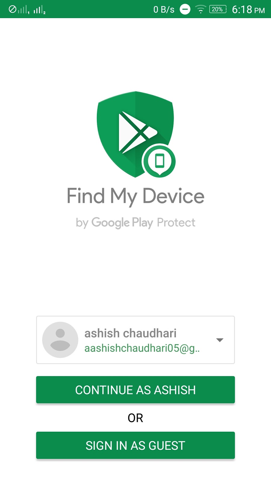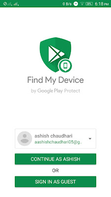 App इनस्टॉल होने के बाद आपका जो मोबाइल फ़ोन चोरी हो गया है या खो गया है, उस खोये हुए फ़ोन में जो ईमेल id आपने डाला हुवा है उस ईमेल id और पासवर्ड को यहाँ डेल दे यानि Find My Device app मै